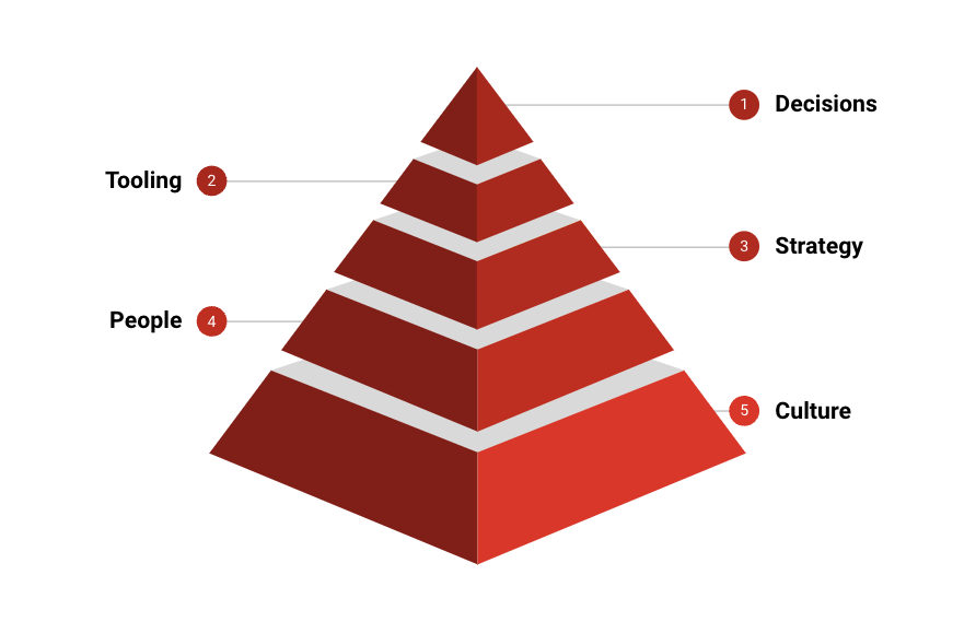 Once you have a top down POV that creates the foundations of culture you can layer on people, strategy, tooling, and eventually better decisions.