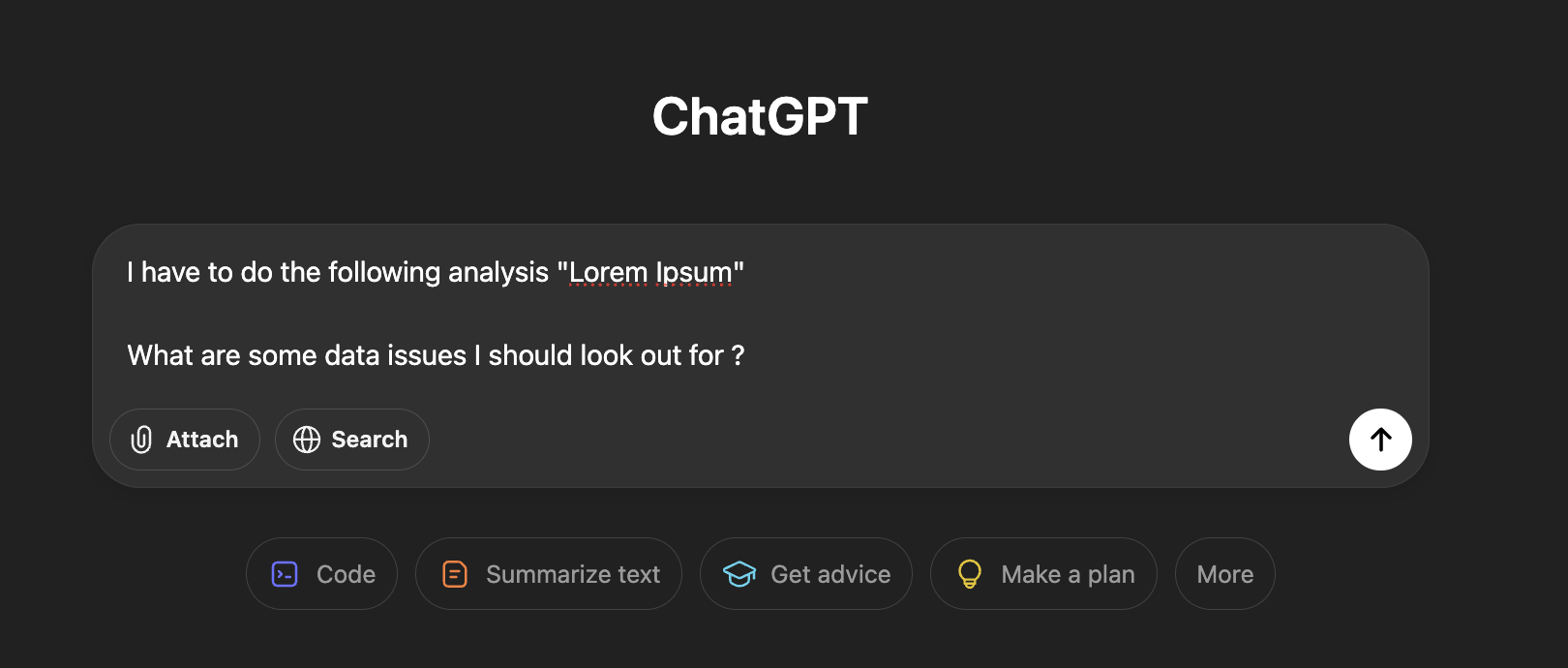 Completeness → Completeness is the third and final step and it’s where AI has mixed results. Completeness requires context and as we’ve discussed before AI doesn’t always have all the context. So, you can use Gen AI to verify whether you’ve thought of everything in your current analysis and it’ll do the best it can. Again, use it like a sounding board. However, it has limitations because it only knows what you provide it and often we’re lacking context that would help us be better data scientist / analysts.