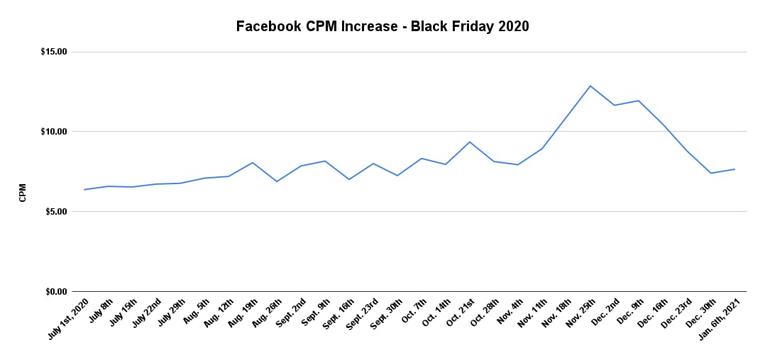 This chart is 4 years old, but it’s representative of what every company experiences. It’s 2-3x more expensive just to serve an ad starting the first week of November. Doing that for 3 weeks results in massive incremental costs of advertising.